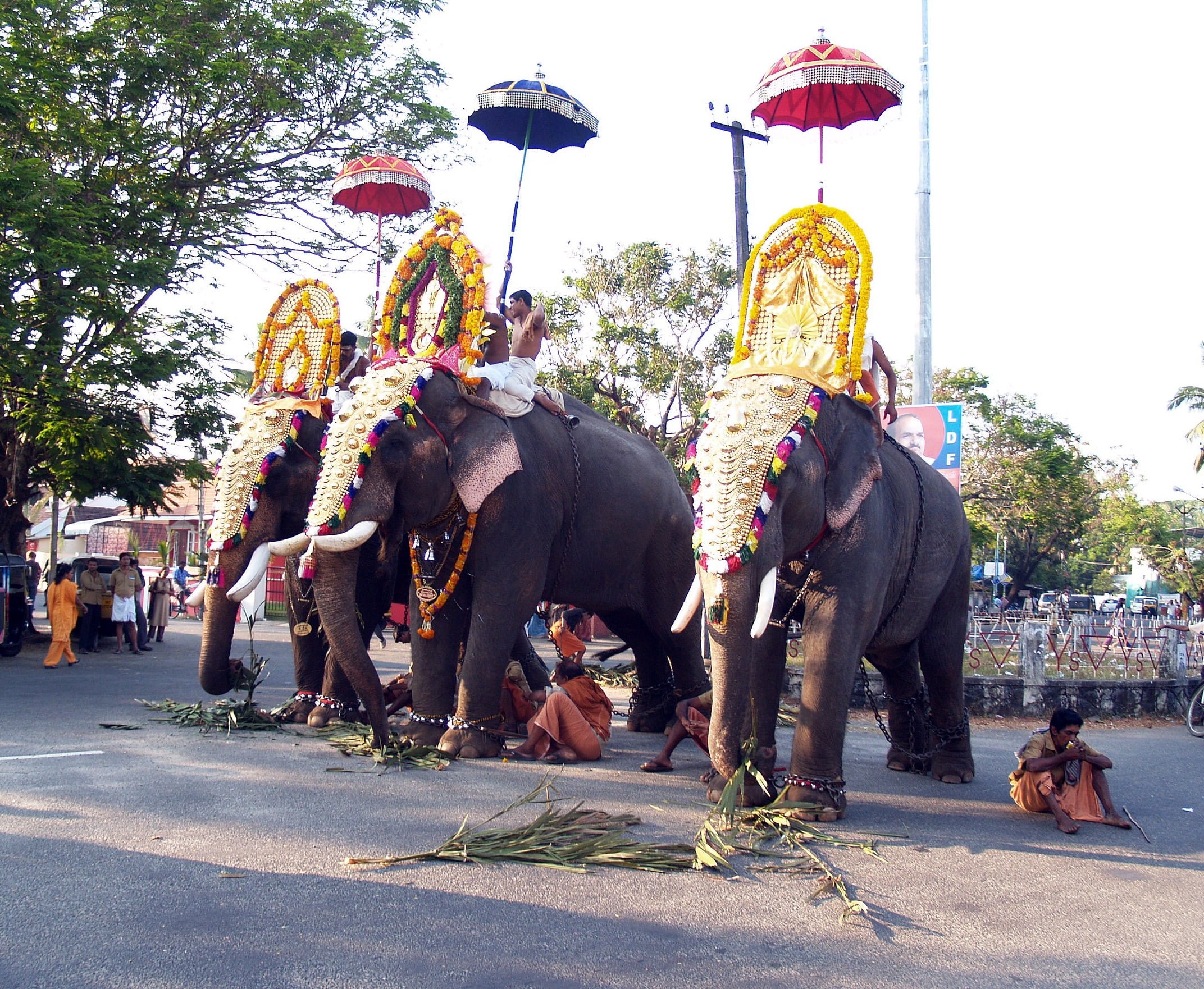 Kerala is a coastal state in the deep south of India, which is a lot greener and more relaxing than the bustling cities in the north. Cochin is a beautiful, quaint town with old Indian, Dutch and colonial houses. The photo above was taken in Cochin and shows elephants in full regalia!